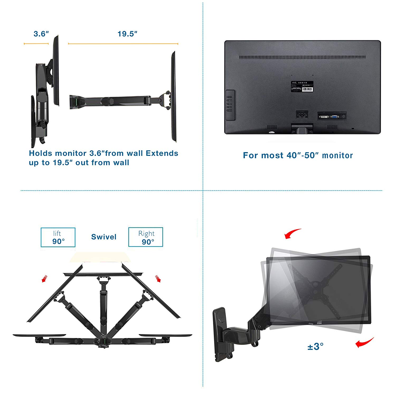 + Chuyển động linh hoạt theo mọi hướng cho phép người dùng có thể ngồi hoặc đứng xem thoải mái