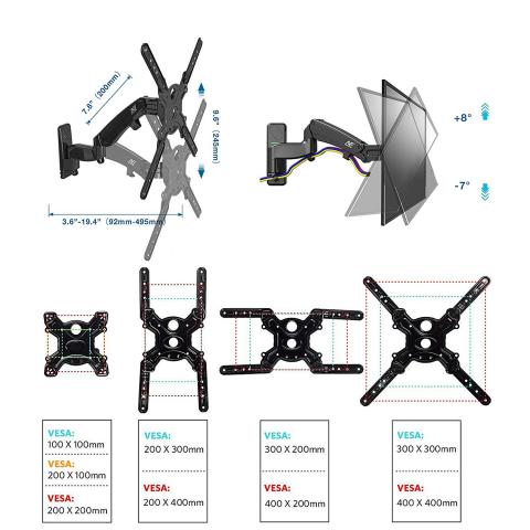 Sản phẩm Giá treo tivi góc xoay đa hướng F450 được nhập khẩu bởi công ty Gia Hưng là sản phẩm mới nhất trong dòng F-series với nhiều nâng cấp đáng giá. Việc thêm một khớp xoay giúp giá treo tivi F450 có độ vươn xa lên tới 49cm, lên xuống 24,5cm. Phù hợp với đa số tivi từ 40-50 inch và tải trọng từ 8-16 kg. Sản phẩm giá treo tivi F450 có thể được lắp đặt một cách dễ dàng trên tường. Thiết kế xi lanh khí nito nén giúp màn hình có thể xoay theo mọi hướng và theo độ cao tùy thích mà không cần thêm bất cứ dụng cụ hỗ trợ nào. Với thiết kế trục xoay hình nón quay tới 180 độ, cho phép bao phủ hầu như toàn bộ các điểm xem trong phòng, bạn có thể xem tivi từ nhiều vị trí khác nhau mà không gặp khó khăn gì