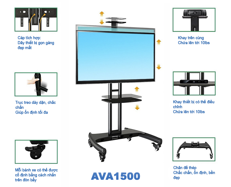 Cột Tivi Di Động AVA1500-60-1P Kèm Khay Camera